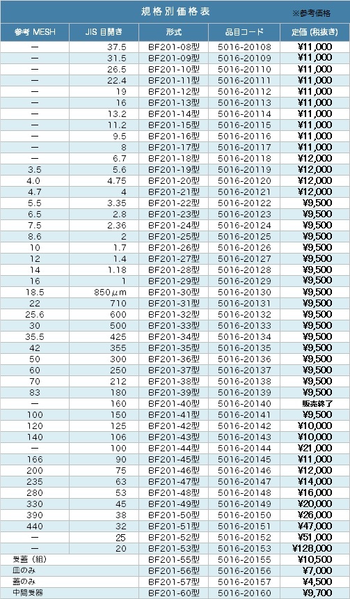 トップページ > ろ過製品 > フルイ > NRK 試験フルイ・ステンレス製 BF201型(Φ200 x 60H)