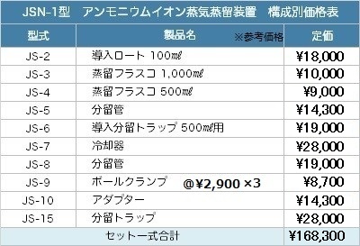 トップページ > 分離(反応・蒸留・抽出装置) > JS製品(セット製品) > JSN-1型 アンモニウムイオン蒸気蒸留装置