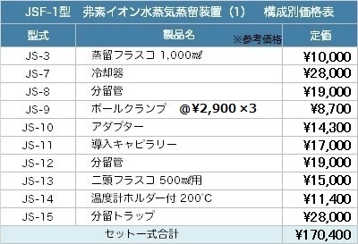 トップページ > 分離(反応・蒸留・抽出装置) > JS製品(セット製品) > JSF-1型 弗素イオン水蒸気蒸留装置(1)